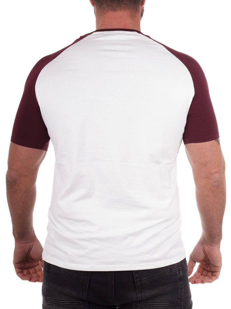 Stylowa biała koszulka z burgundowymi rękawami oraz czarnym haftowanym logo na piersi. Idealny wybór dla osób, które chcą połączyć komfort, sportowy charakter i nowoczesny design. T-shirt wykonany jest z miękkiego i elastycznego materiału, który dopasowuje się do ruchów ciała, nie tracąc przy tym swojego kształtu.