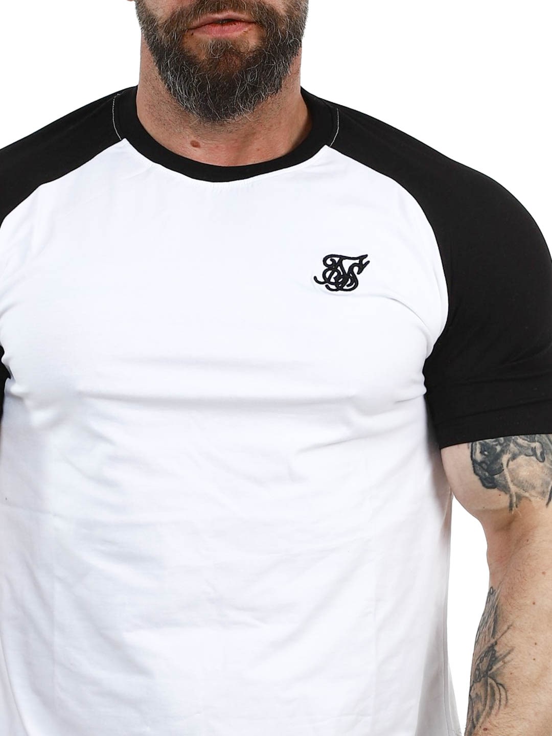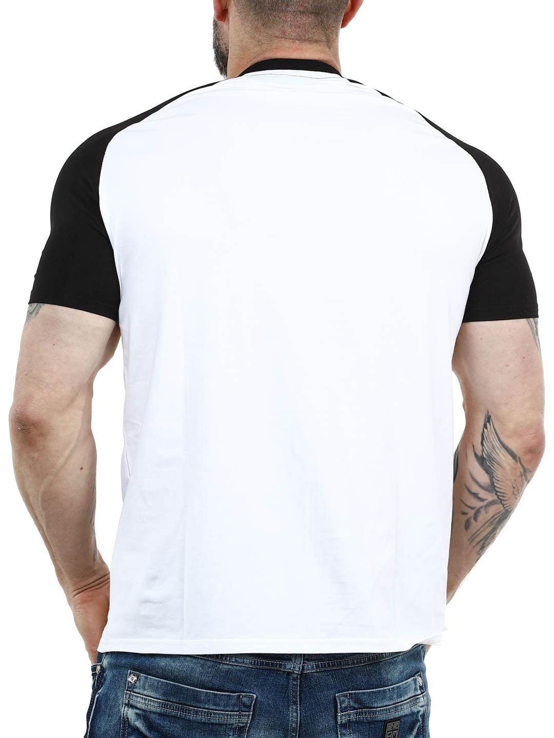 Stylowa biała koszulka z czarnym rękawami oraz czarnym haftowanym logo na piersi. Idealny wybór dla osób, które chcą połączyć komfort, sportowy charakter i nowoczesny design. T-shirt wykonany jest z miękkiego i elastycznego materiału, który dopasowuje się do ruchów ciała, nie tracąc przy tym swojego kształtu.
