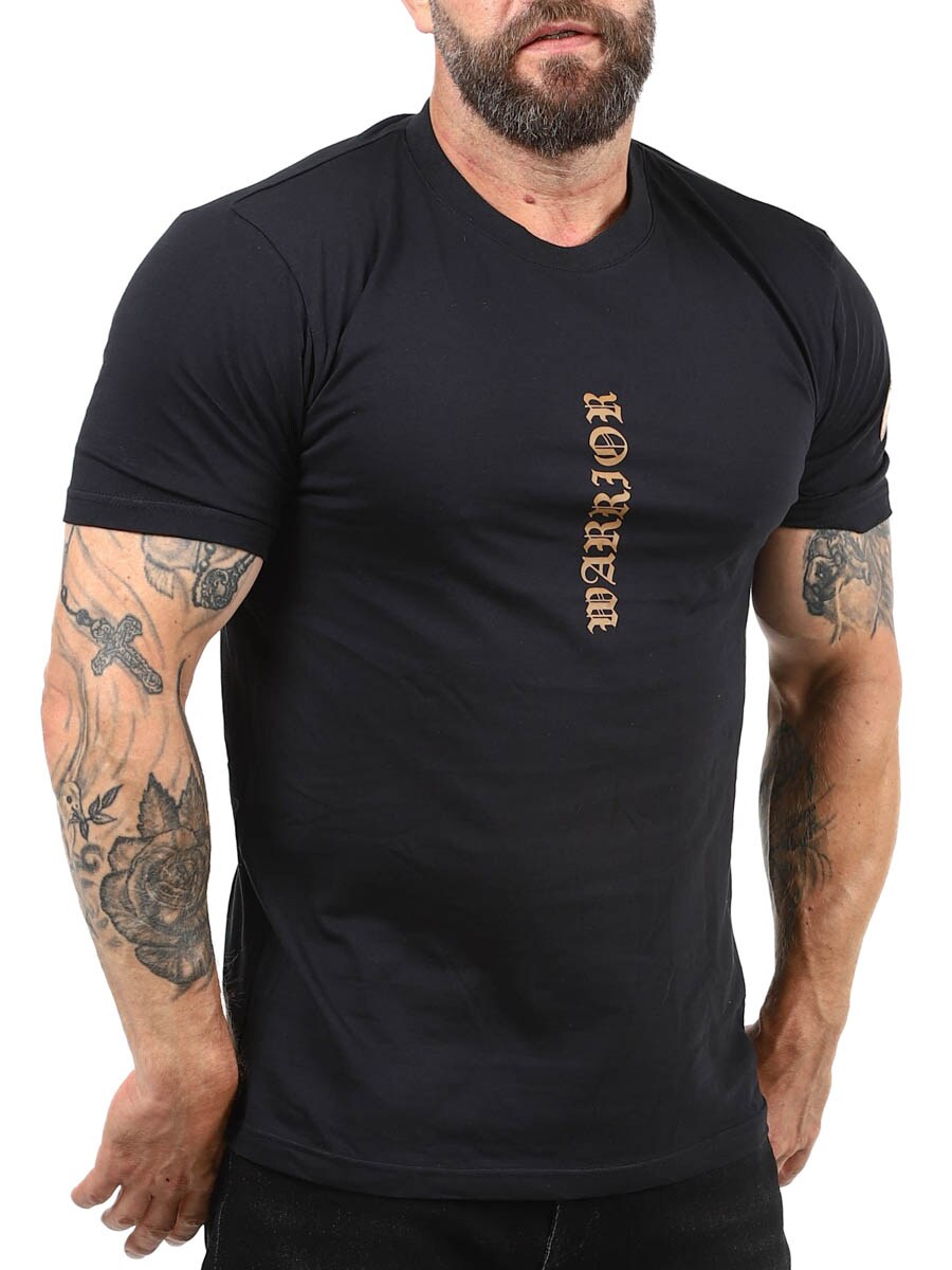 Czarna koszulka z nadrukiem na plecach i klatce piersiowej. Wykonana z miękkiej bawełny, z zaokrąglonym, prążkowanym dekoltem i klasycznym krojem, który dobrze pasuje do każdej sylwetki. Ta koszulka jest dostępna wyłącznie w Rockdenim!