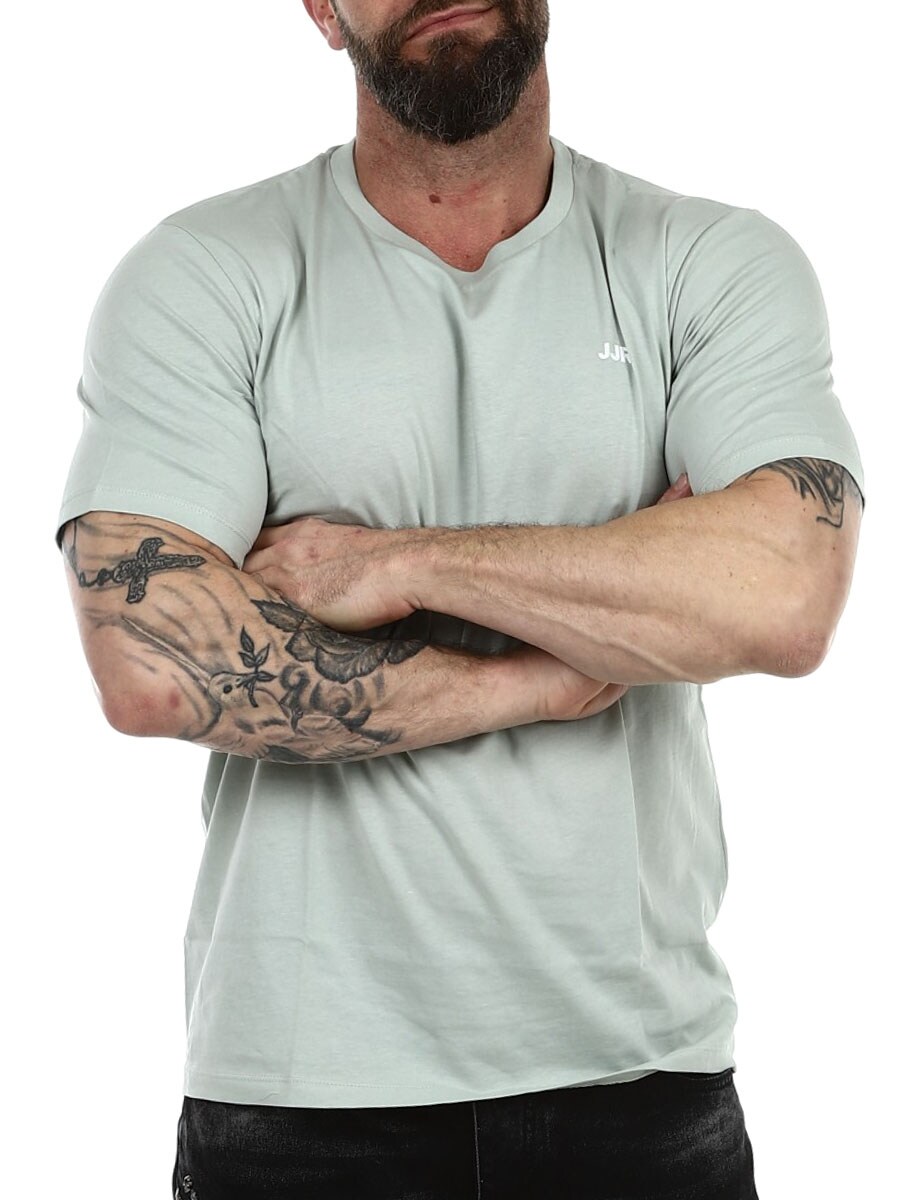 Prosty i stylowy t-shirt, który możesz nosić ze wszystkim ze swojej garderoby. Wykonany z miękkiego i elastycznego dżerseju. Koszulka ma klasyczny krój z okrągłym dekoltem, a także dyskretne logo JJR na piersi, które nadaje jej subtelny i nowoczesny styl.