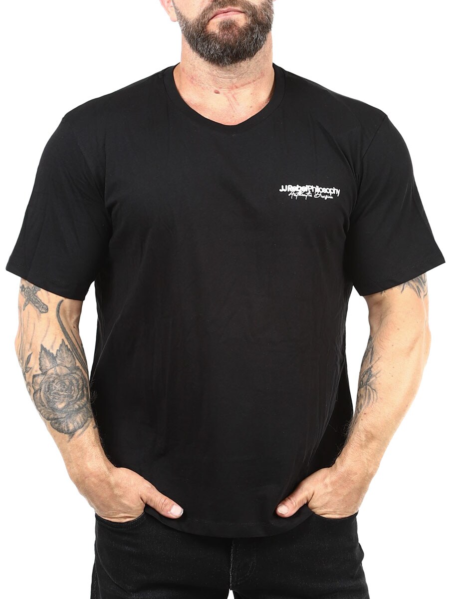 Prosty i stylowy t-shirt, który możesz nosić ze wszystkim ze swojej garderoby. Wykonany z miękkiego i elastycznego bawełna. Koszulka ma klasyczny krój z okrągłym dekoltem, a także dyskretne logo JJR na piersi, które nadaje jej subtelny i nowoczesny styl.