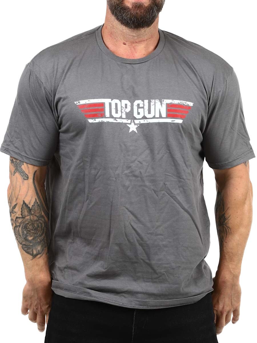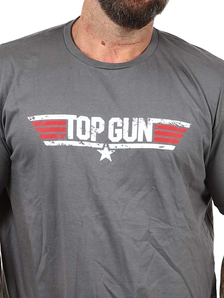 Ten ciemnoszara t-shirt Top Gun to pozycja obowiązkowa dla fanów klasycznych filmów akcji i kultowego stylu lat 80. Ma klasyczny krój i zaokrąglony dekolt. Wykonany w 100% z bawełny.