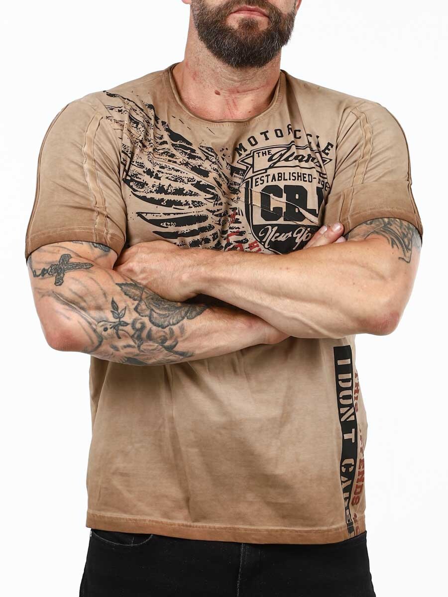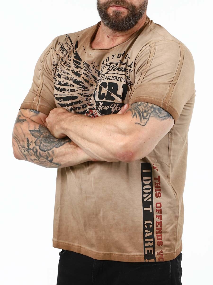 Stylowa koszulka z okrągłym dekoltem i surowymi krawędziami. Zaprojektowana z odważnym nadrukiem, który emanuje pewnością siebie i buntowniczym charakterem. Wykonana z miękkiego i elastycznego materiału.