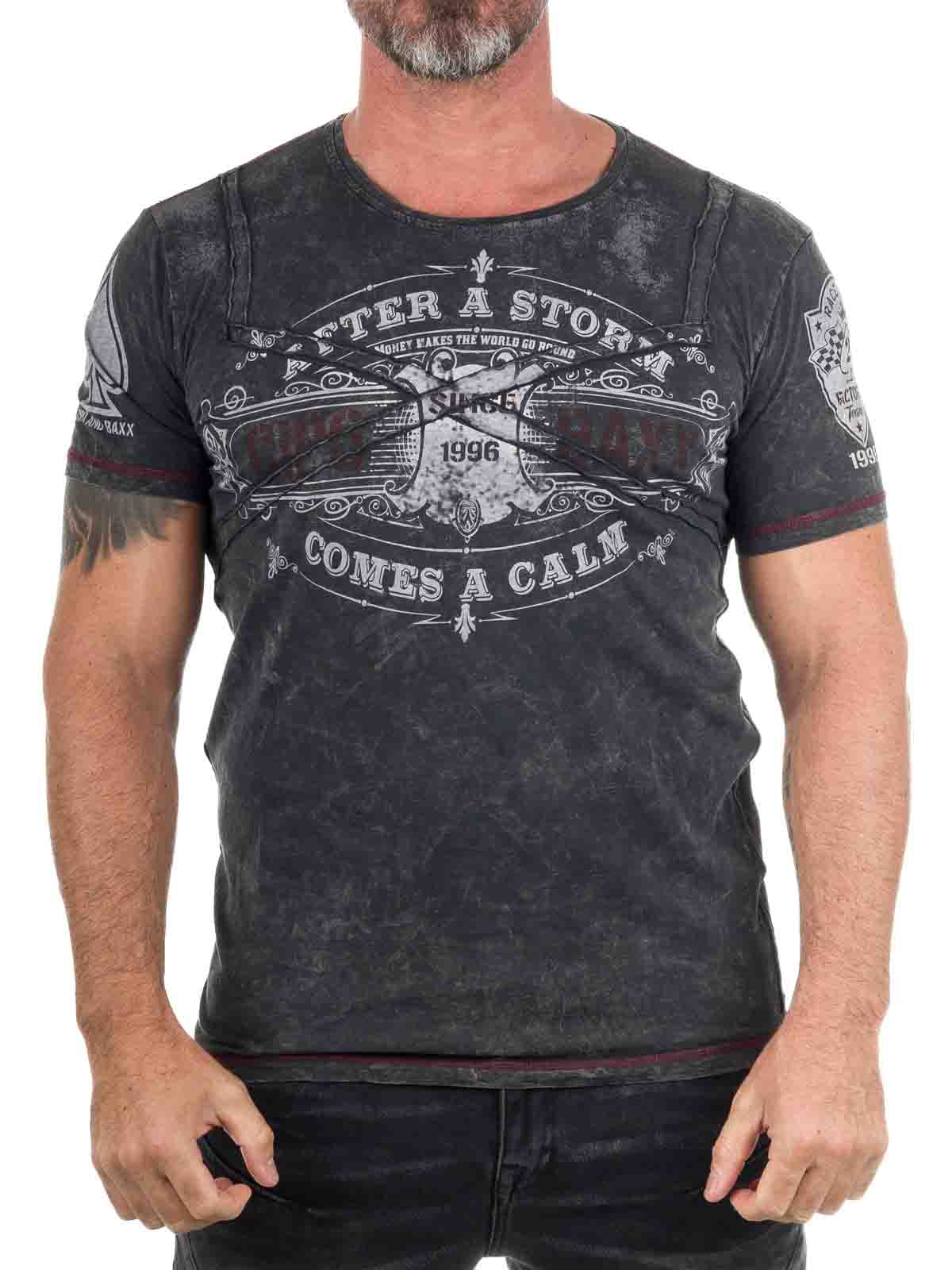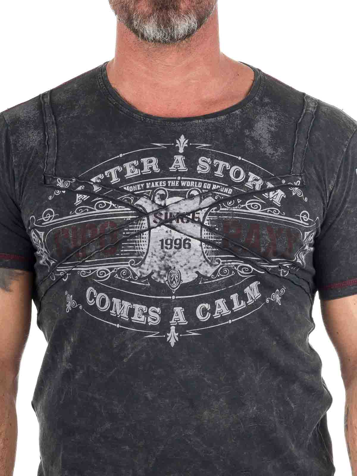 Delikatna koszulka z bawełny, z kolorowymi przeszyciami na ramionach, przy rękawkach oraz u dołu. Duży nadruk na klatce piersiowej, plecach oraz na rękawkach. Metalowa naszywka z logo u dołu koszulki.