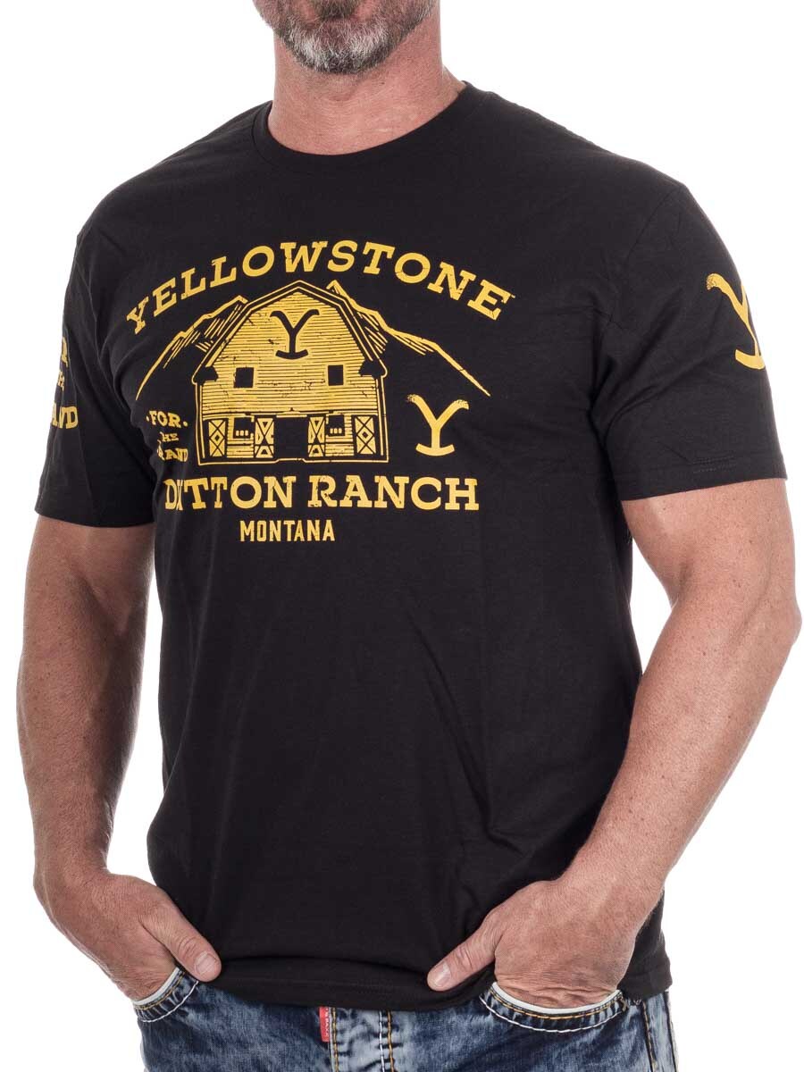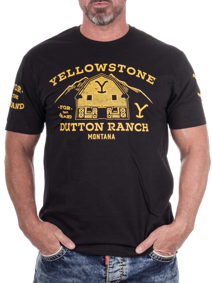Koszulka z klasycznym nadrukiem Dutton Ranch z popularnego serialu telewizyjnego Yellowstone. Wykonana z miękkiej bawełny, zapewniającej wysoki komfort i trwałość. Klasyczny krój i okrągły dekolt.
