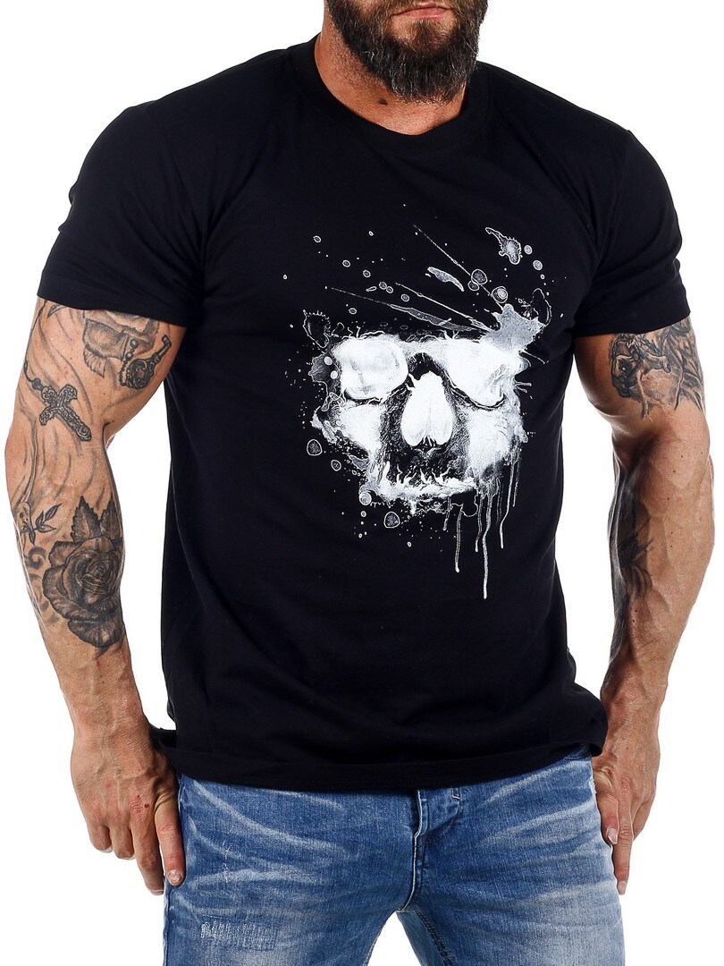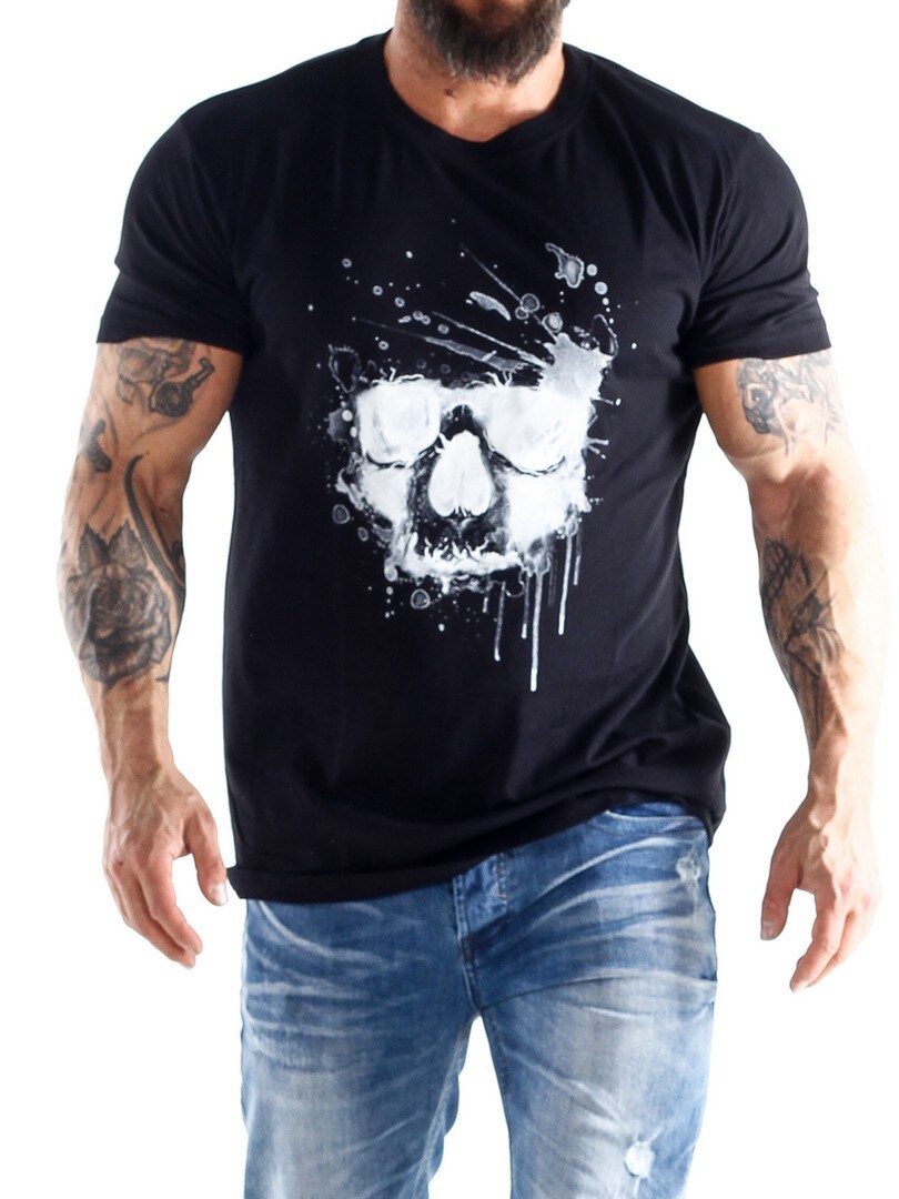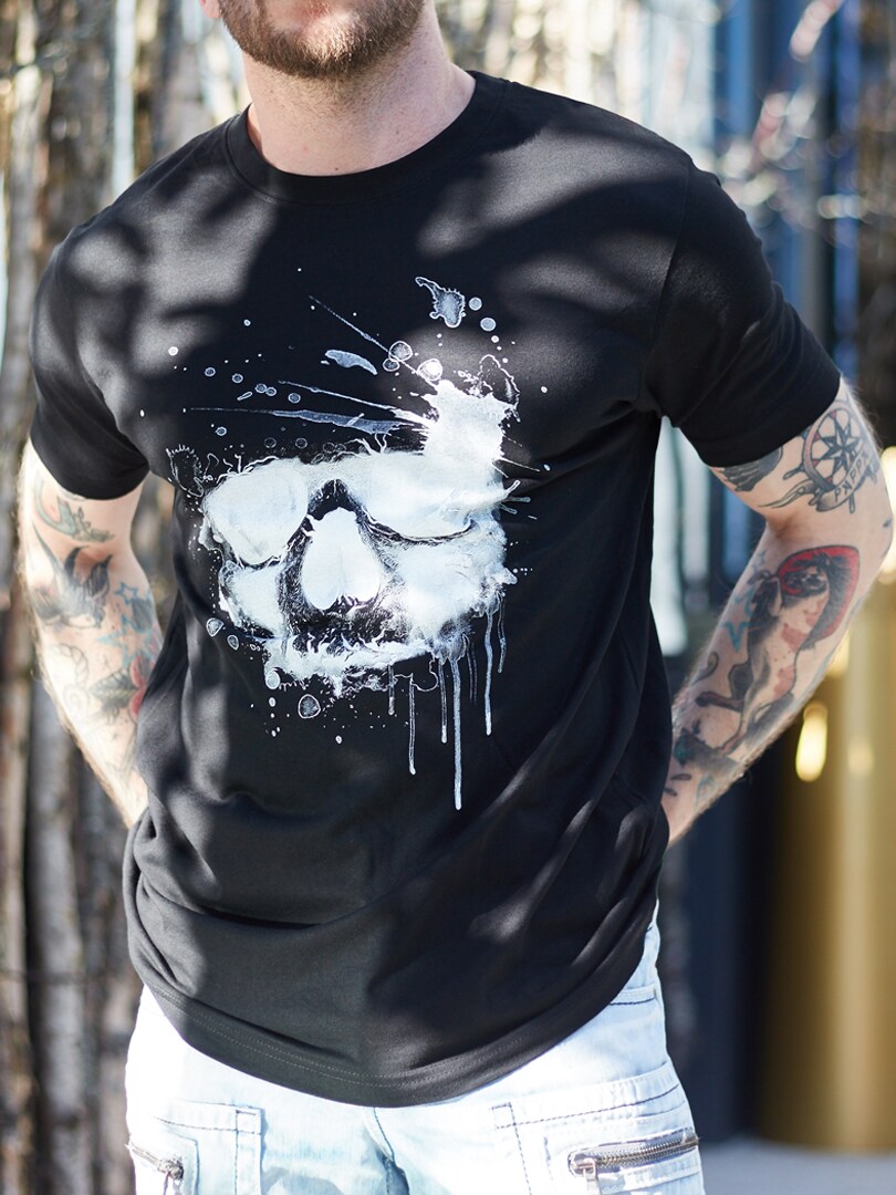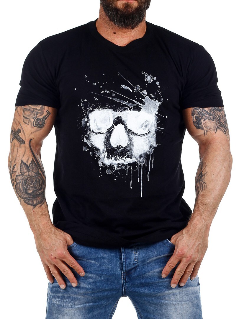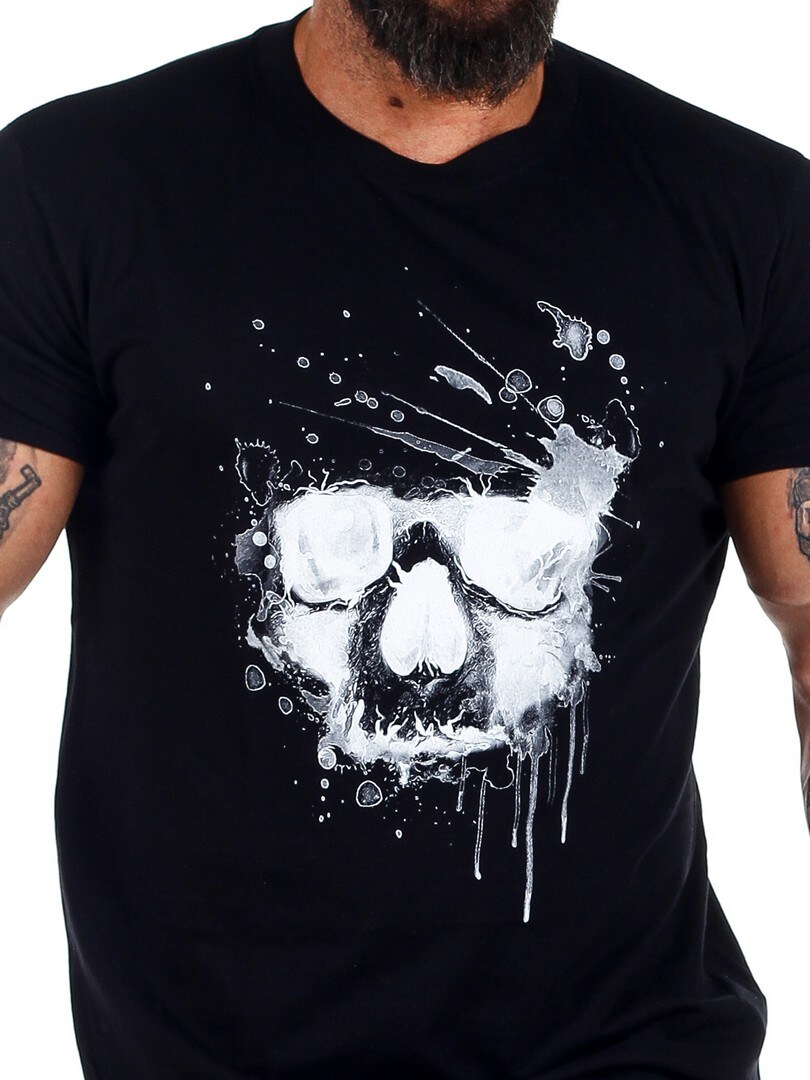 Koszulka z wygodnej bawełny, o klasycznym kroju, z białym nadrukiem czaszki z przodu.