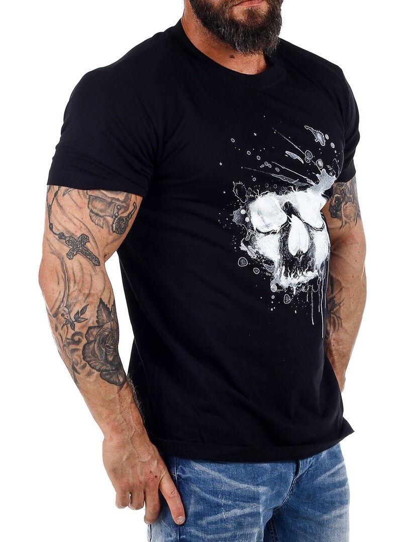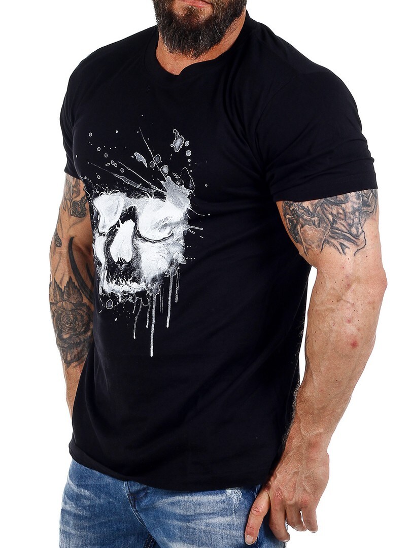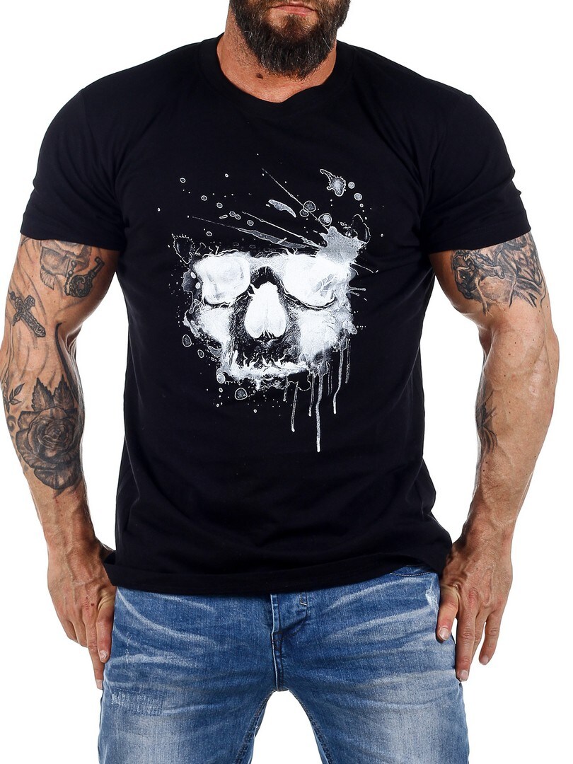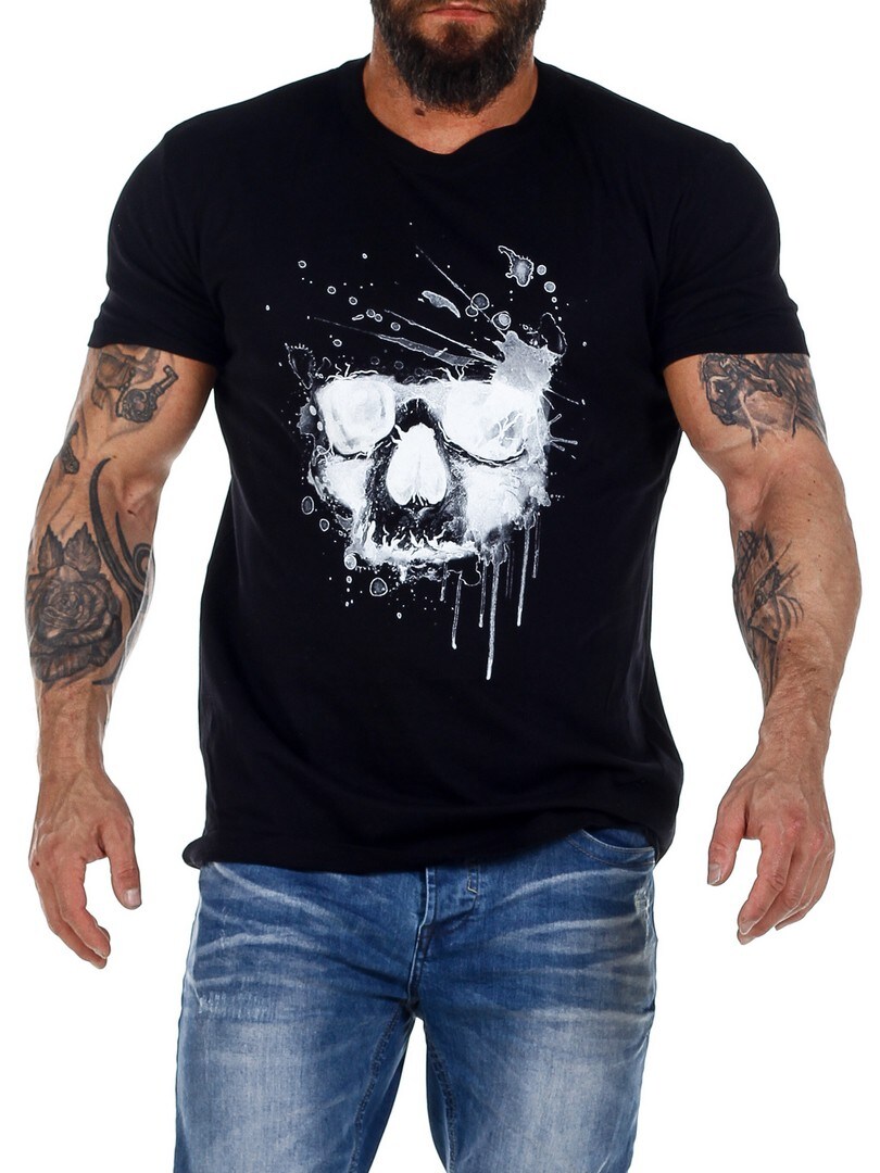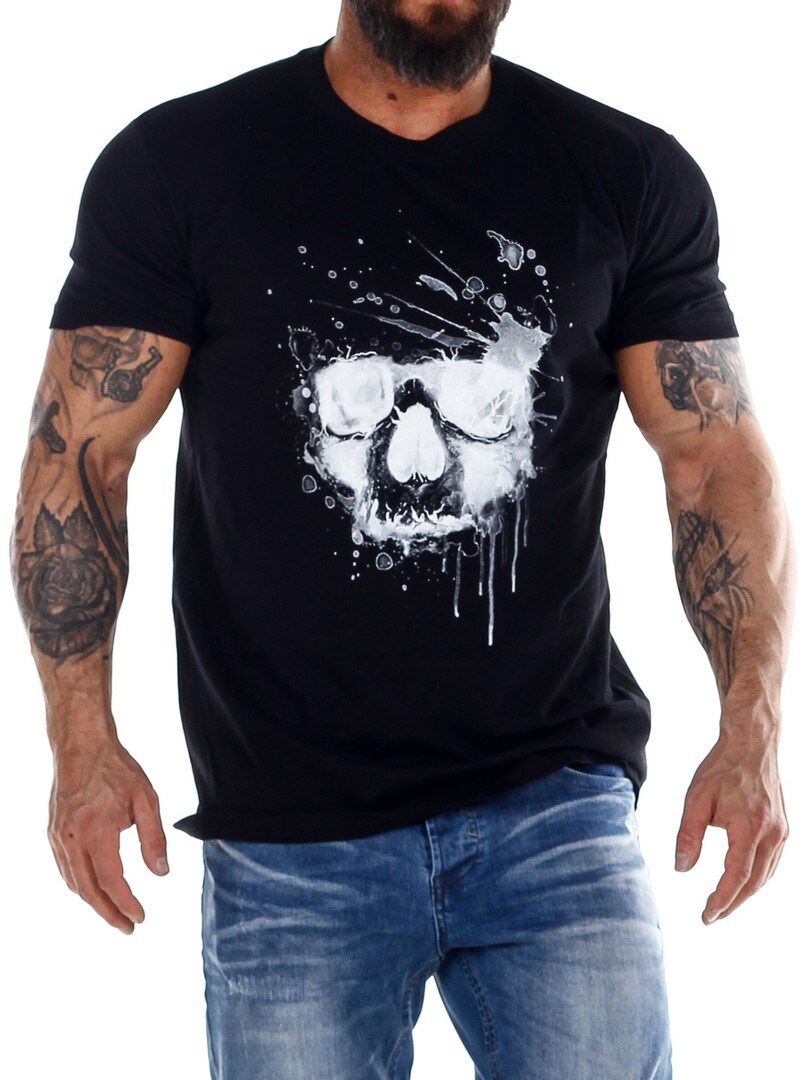 Koszulka z wygodnej bawełny, o klasycznym kroju, z białym nadrukiem czaszki z przodu.