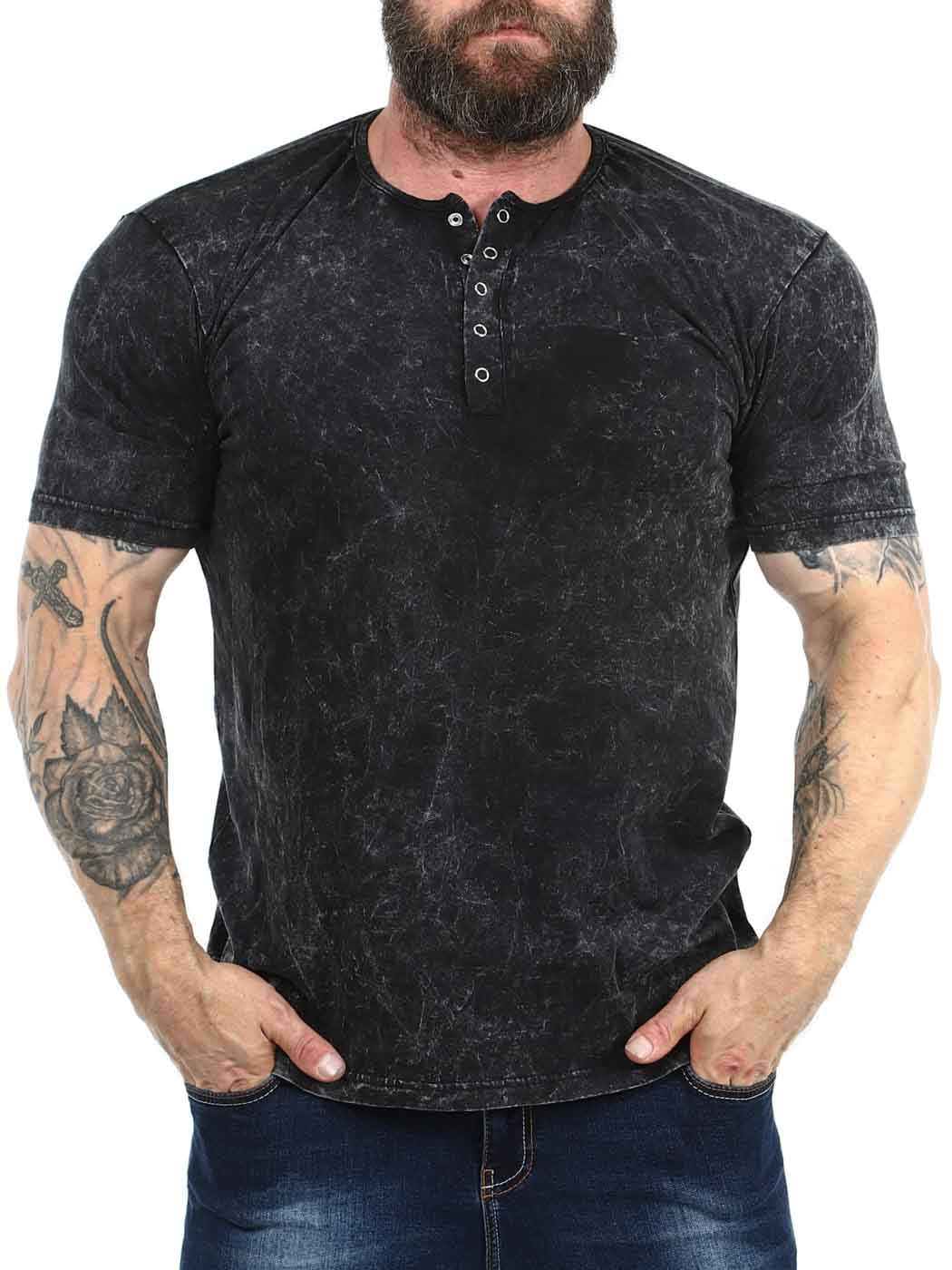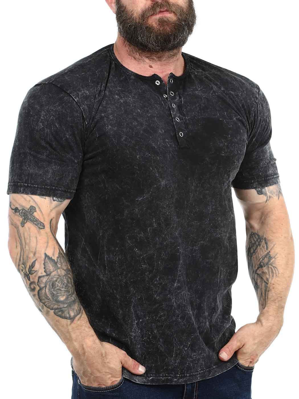 T-shirt wykonany w technologii acid-washed o klasycznym kroju. Posiada zaokrąglony dekolt zapinany na guziki i wykonana jest ze 100% bawełny. Tę koszulkę znajdziesz tylko u nas!