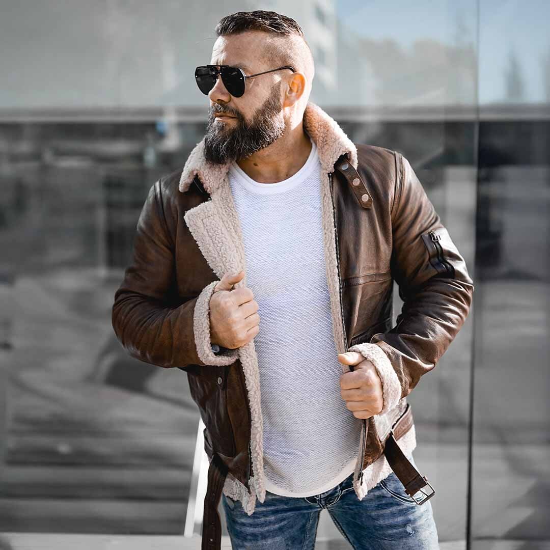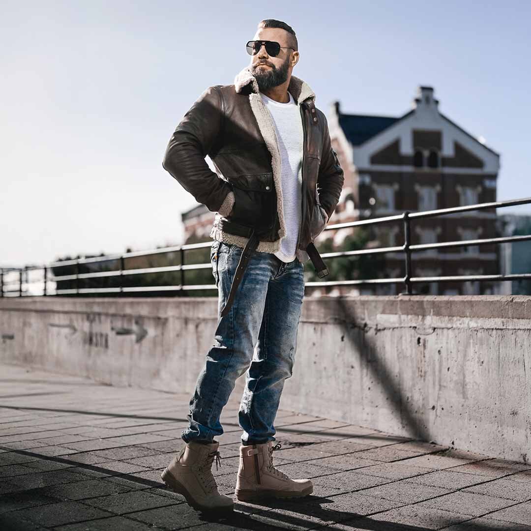 Szukasz zestawu, który mówi sam za siebie? Ta stylizacja to definicja współczesnej męskości, gdzie klasyczna skóra spotyka się z detalami w stylu industrialnym. To idealny wybór dla pewnych siebie mężczyzn.